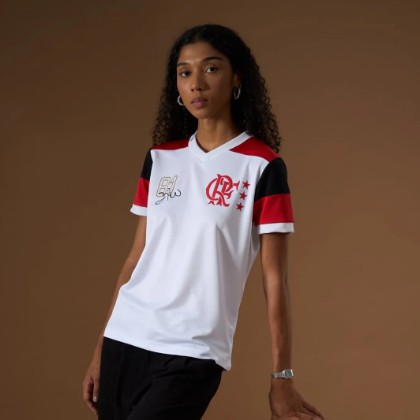 Compre a Camisa branca retrô do Flamengo do Zico (Feminina)