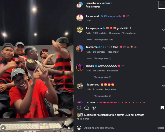 O funk foi aprovado por Paquetá, que curtiu e comentou a publicação. Confira: