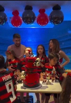 Um dos destaques da festa foi o bolo, que apresentava o escudo do Flamengo em destaque absoluto. A festa contou com doces, lembrancinhas e balões nas cores preta e vermelha, evidenciando a paixão pelo time. O ambiente refletia o orgulho do jogador ao ver o filho envolto nas cores rubro-negras.