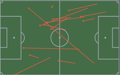 Nos passes longos, outra especialidade do atleta, o aproveitamento foi de apenas 64% (9 certos em 14 tentativas), dificultando a quebra das linhas de marcação do Fluminense.