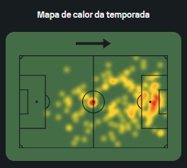 - Finalizações por jogo: 3.3 (1.8 no gol)