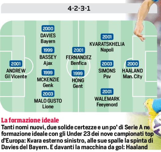 Em 2022, o jornal italiano "Corriere dello Sport" elegeu o brasileiro como o melhor goleiro Sub-23 em atividade na Europa. O time reunia outros atletas consolidados no Velho Continente. Confira: