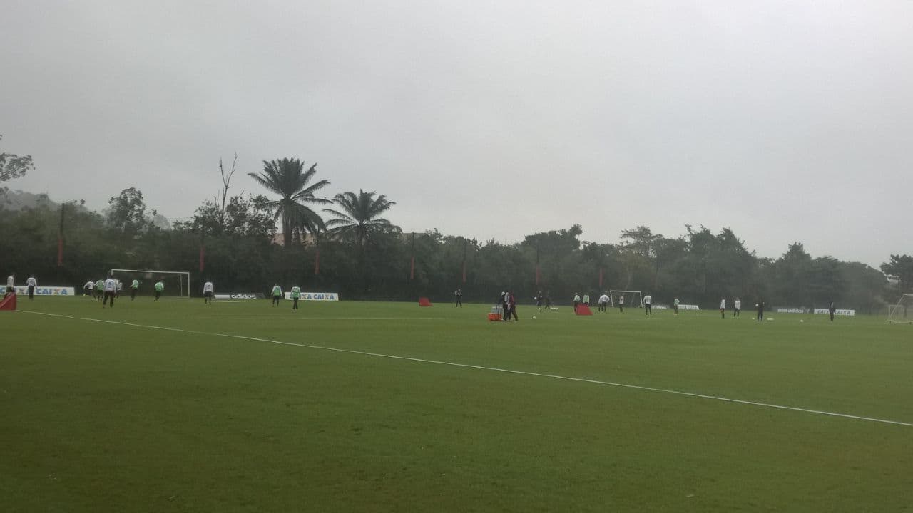 E no trabalho de hoje, Cristóvão Borges dividiu o elenco em 3 para mais uma vez focar no trabalho de passes. Sempre participativo, o treinador cobra êxito dos atletas e muita movimentação. Cristóvão exige que os treinamentos tenham a mesma qualidade no passe dos jogos. Ainda sem dar qualquer tipo de pista com relação ao time que enfrenta o Atlético MG no próximo sábado. Mesmo com o frio que tomou conta do Rio de Janeiro na tarde de hoje, o treinamento foi movimentado. Os goleiros cobravam atenção e marcação adiantada para os defensores dos seus times, que correspondiam.