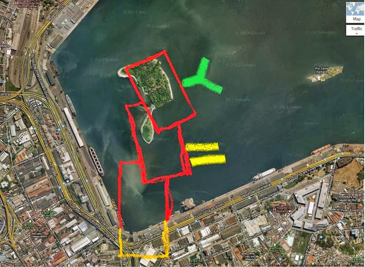 A ilha em si não poderia ser usada “como ilha”. A primeira medida seria o aterro, um grande aterro, que pudesse construir uma estrutura “tipo ponte”, ligando a ilha à região da Rodoviária Novo Rio. Avançando na ideia, se tem um parque, que pode ter dentro dele um estádio, mas o estádio passa a ser um detalhe. Amplia-se a área verde e as opções de lazer da região significativamente, dois dos tópicos principais do Projeto Porto Maravilha.
