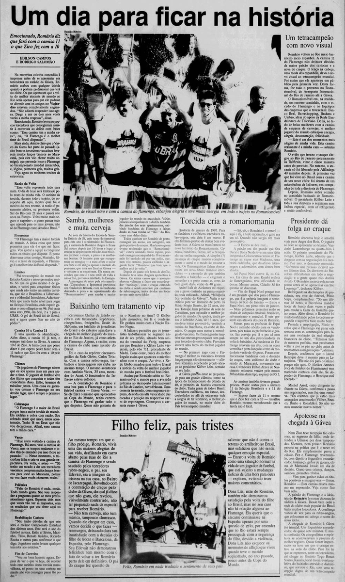 Há exatamente 30 anos, em 15 de janeiro de 1995, Romário dava sua primeira entrevista coletiva sendo jogador do Flamengo. Sem meias-palavras, o melhor jogador do mundo na época chegou ao Rubro-Negro provocando o maior rival, no qual foi revelado, elogiou a torcida do Mengão. No entanto, seus pais não aprovaram o retorno do filho.