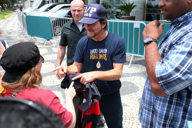 Em vinda recente ao Brasil para um show no Maracanã, Eddie Vedder, vocalista do Pearl Jam, clássica banda de Grunge, movimento iniciado pelo Nirvana de Kurt Cobain, recebeu uma camisa do Flamengo de um fã na porta do hotel, em Copacabana.